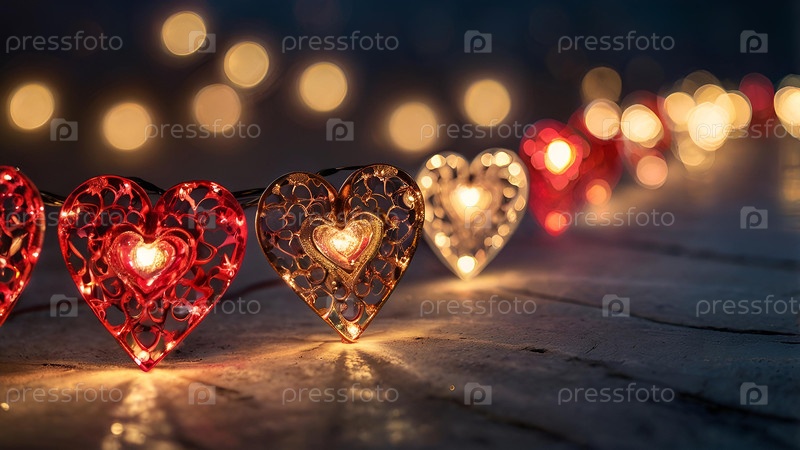 Концепция Дня святого Валентина, баннер с гирляндами в форме сердец и волшебными огнями для праздника, наполненного любовью