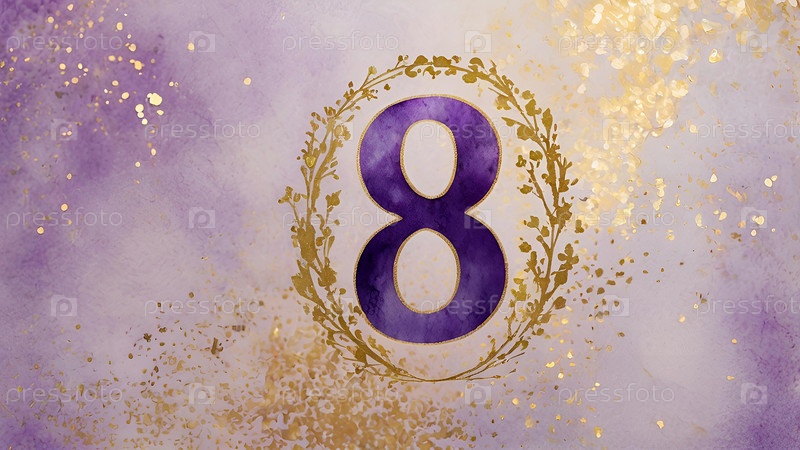 Международный женский день. праздник приходится на 8 марта. баннер, флаер. торжественный, нежный фиолетовый цветочный фон номер 8
