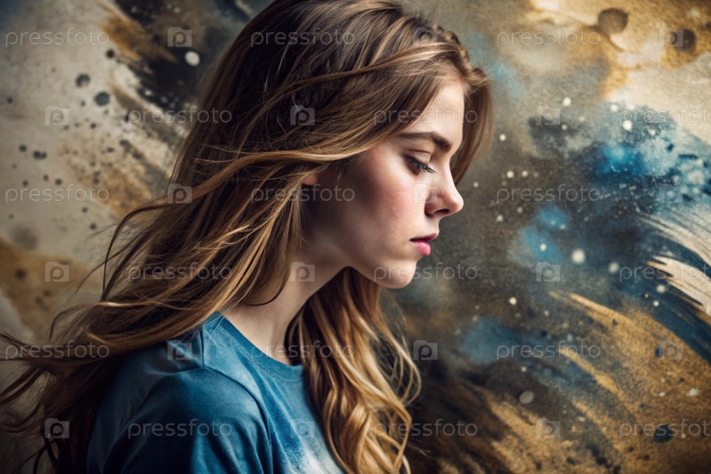 Портрет красивой молодой девушки с продуманным взглядом. волосы развиваются и создают ощущение легкости и естественности