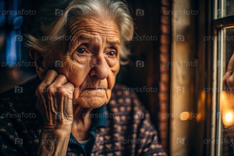 Минимализм.Портрет пожилой женщины, пенсионерки, концепция жизни пожилых людей, здоровье, одиночество и потеря памяти