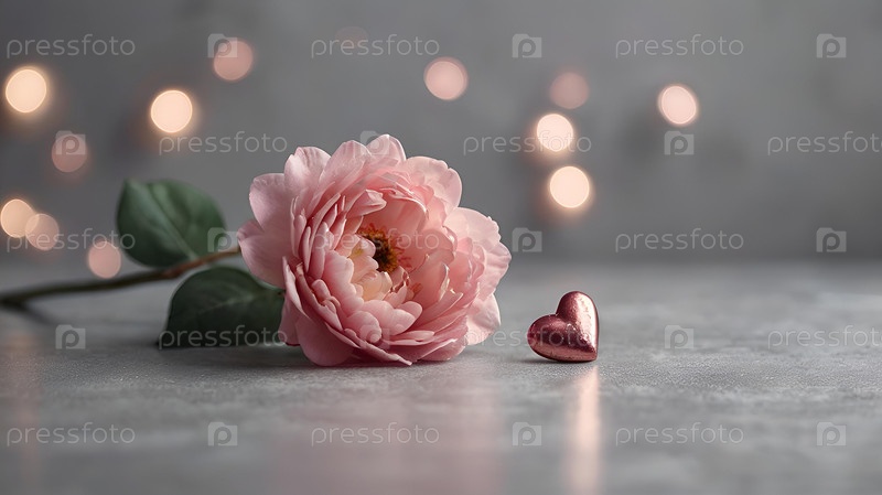 Минимализм. Красивый светло-розовый цветок на сером фоне. Концепция Дня святого Валентина, Дня матери и женского дня. Копия текстового пробела