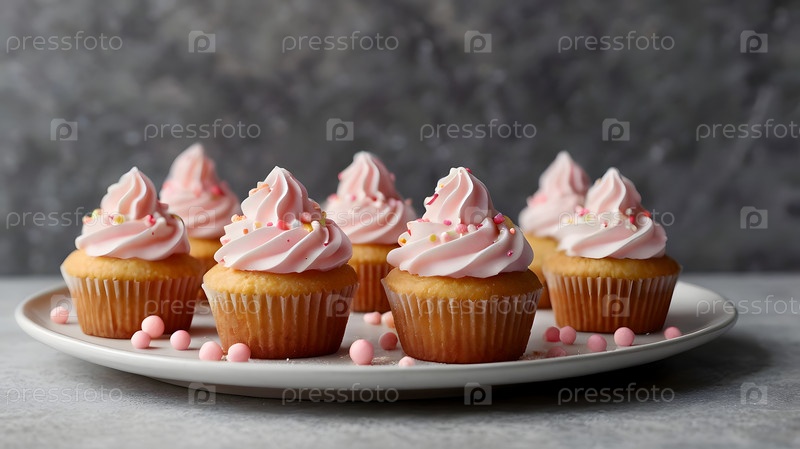 Праздничные кексы, испеченные на розовом фоне с секинами идеально подходят для романтических празднований. День святого Валентина, свадьба