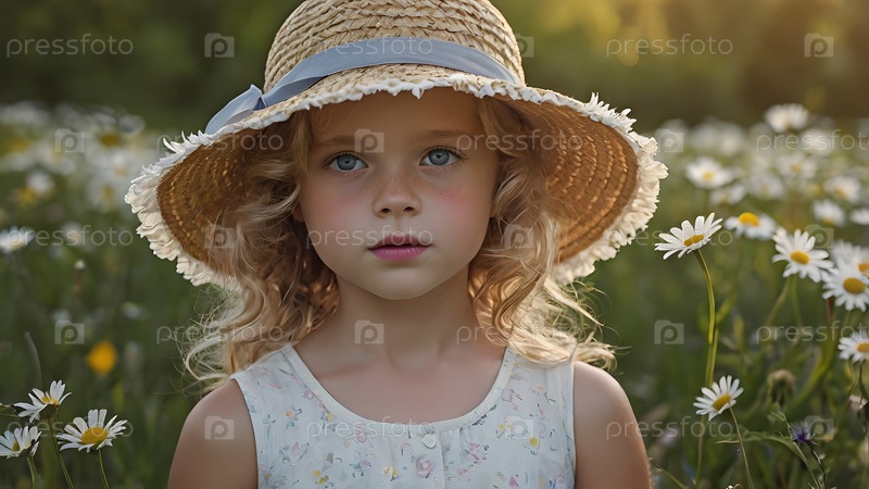 Всероссийский день семьи, любви и верности Красивая маленькая кудрявая девочка в соломенной шляпе на фоне поля ромашки День святого Валентина Петра и Февронии