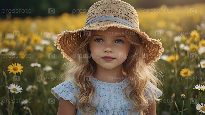 Всероссийский день семьи, любви и верности Красивая маленькая кудрявая девочка в соломенной шляпе на фоне поля ромашки День святого Валентина Петра и Февронии