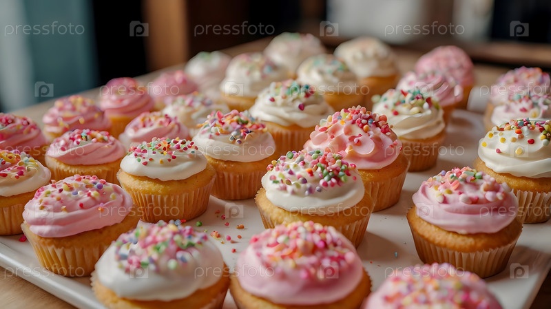Праздничные кексы, испеченные на розовом фоне с секинами идеально подходят для романтических празднований. День святого Валентина, свадьба