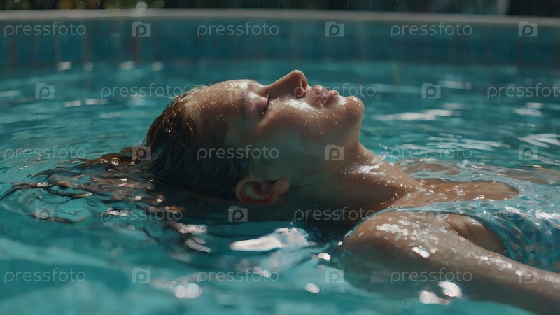 Близко. красивая молодая женщина в бирюзовом бассейне. концепция здорового образа жизни, отдых, расслабление, туризм, косметические спа-процедуры в курорте красота, гордость
