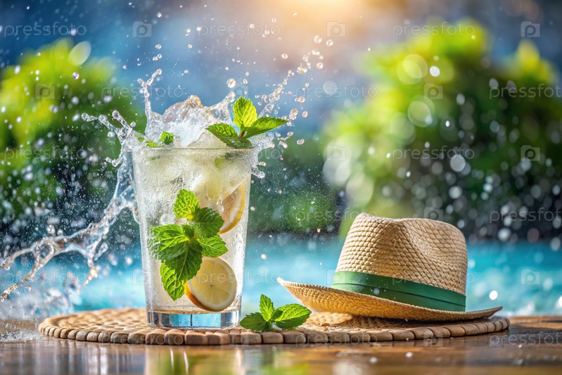 Коктейль алкоголя сочные фрукты с кубиками льда и нарезами лимона, лайма и мяты