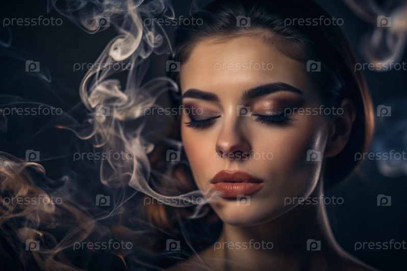 Молодая красивая женщина, завернутая в дым. 'Датура', закрывающая лицо прекрасной девушки