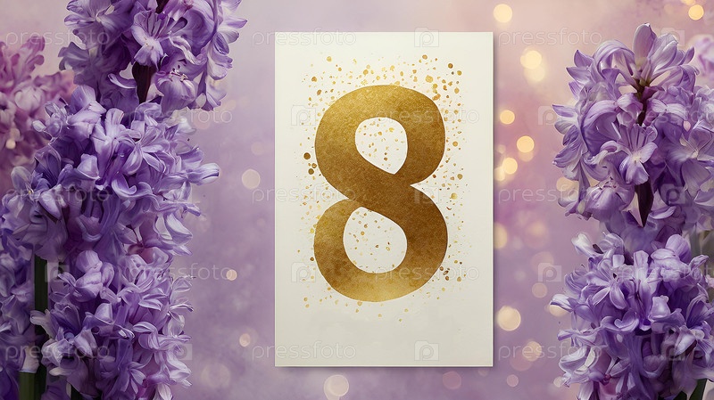 Международный женский день. праздник приходится на 8 марта. баннер, флаер. торжественный, нежный фиолетовый цветочный фон номер 8