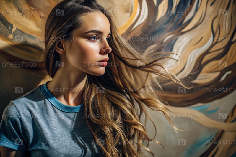 Портрет красивой молодой девушки с продуманным взглядом. волосы развиваются и создают ощущение легкости и естественности