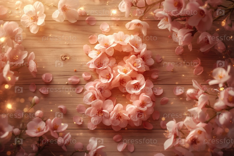 Международный женский день. праздник приходится на 8 марта. баннер, флаер. праздничный мягкий розовый цветочный фон с номером 8
