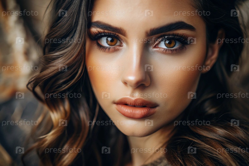Глубокий эмоциональный портрет. Лицо молодой брюнетки без макияжа, с выразительными глазами, кудрявыми волосами. Естественная женская красота