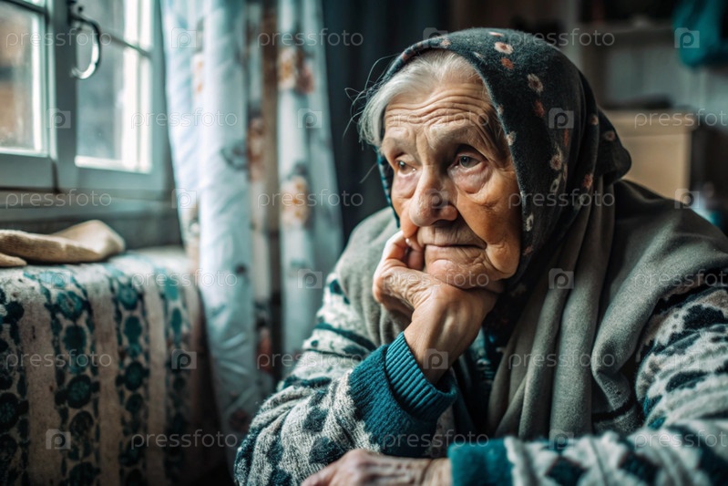 Минимализм.Портрет пожилой женщины, пенсионерки, концепция жизни пожилых людей, здоровье, одиночество и потеря памяти