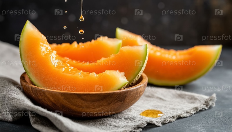Куски спелой дыни в деревянной таре