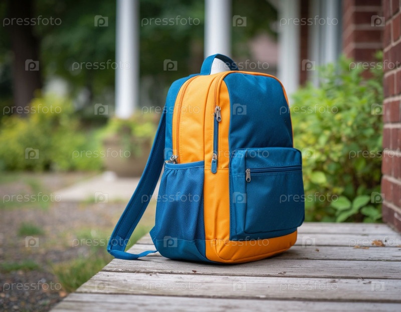 Школьная сумка на крыльце.Давайте вернемся в школу.Создано Ai