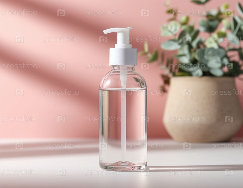 Бутылка с диспенсером для стирки на светлом фоне, компоновка