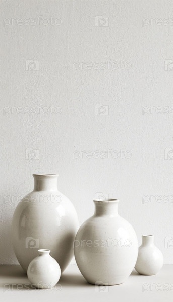 Белые керамические вазы на белом фоне