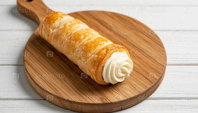 Торт из сливочной трубы на деревянной стойке