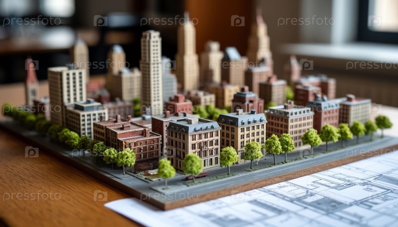 Модель жилого района на столе в архитектурном бюро