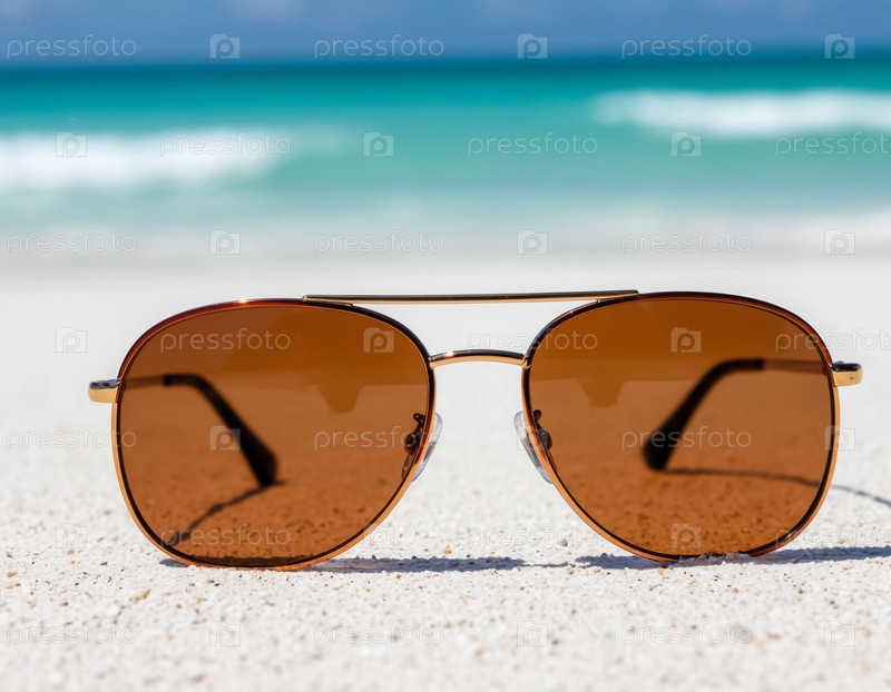 Поляризованные солнцезащитные очки на белом песчаном пляже