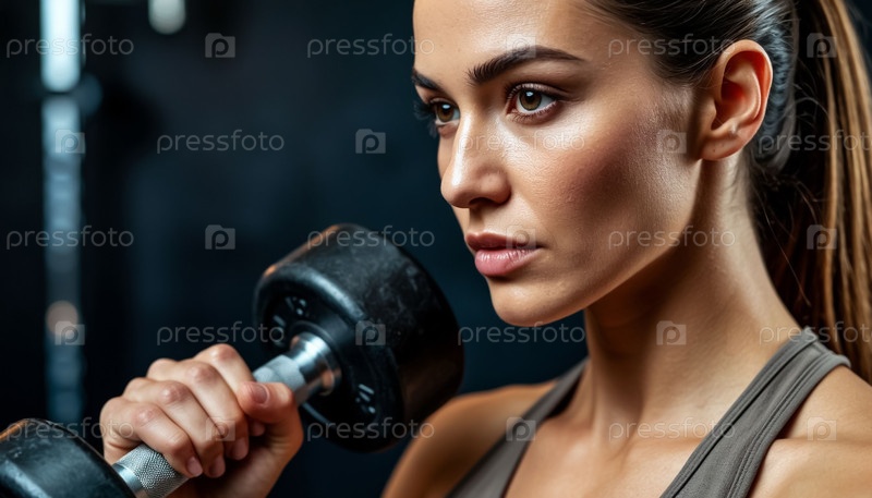 Ориентированная женщина делает упражнения на гантели в тренажерном зале