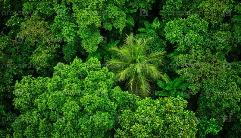 Вид с воздуха зеленых джунглей, созданный ИИ