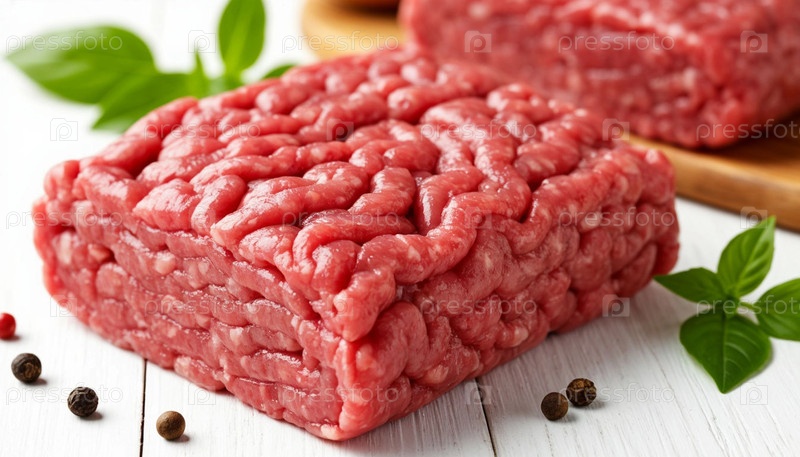 Домашнее мясо на белом столе, иллюстрация создана AI