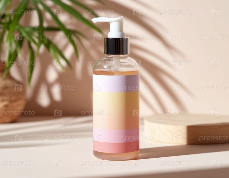 Бутылка с диспенсером для стирки на светлом фоне, компоновка