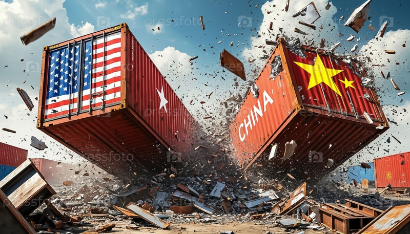 Два американских и китайских судоходных контейнера столкнулись на части крах глобальной торговой системы иллюстрация создана AI