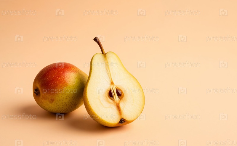 Груши на пастельно-бежевом фоне.Generating AI