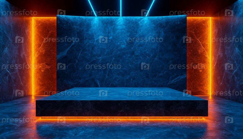 Роскошная подиум для презентации продукта на темном фоне с неоновым освещением