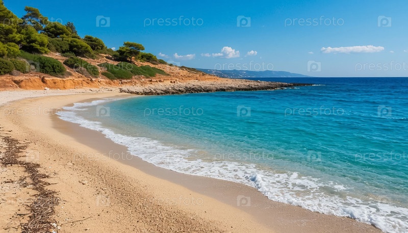 Морской пейзаж - берег моря, песок и волны, пустынный пляж