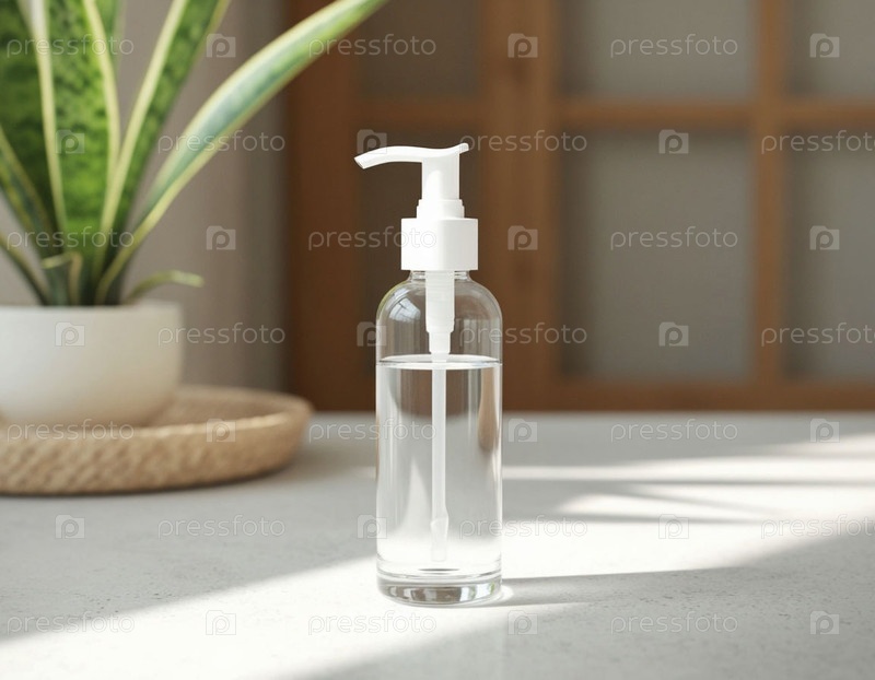 Бутылка с диспенсером для стирки на светлом фоне, компоновка