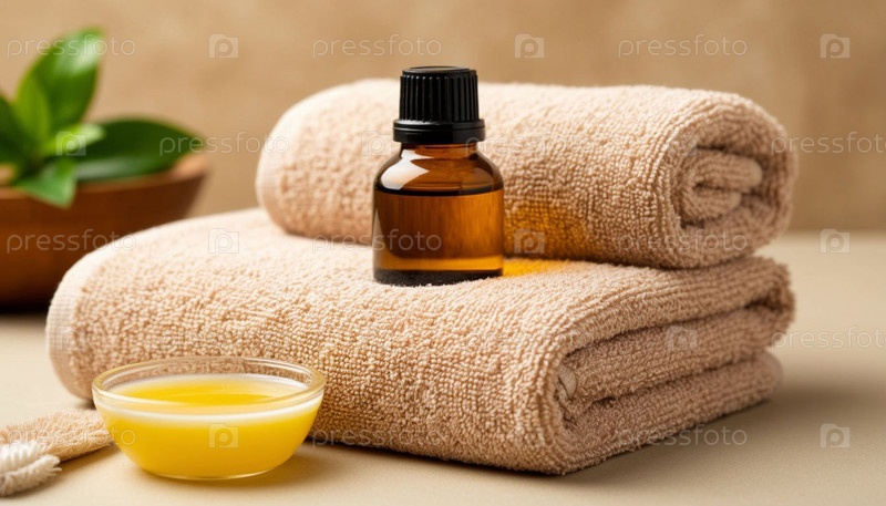 Массажные масла и спа-туалеты на бежевом фоне