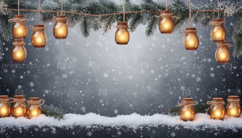 Рождественские фонари в каменных банках и фоне с копировальным пространством