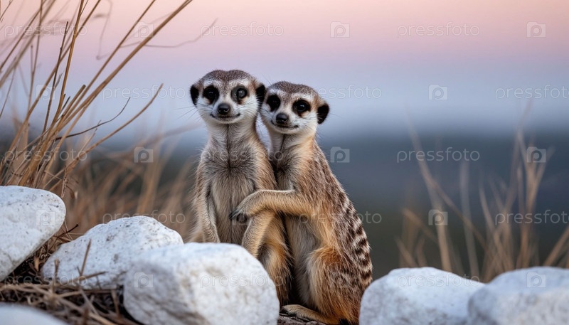 Два сурката заглядывают между скалами