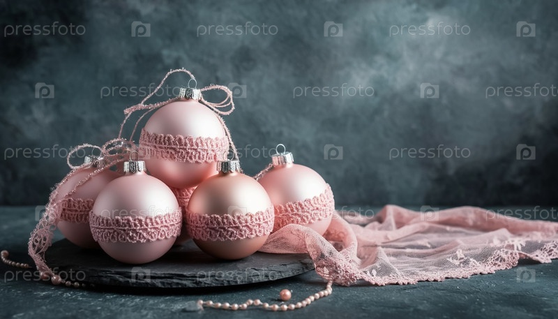 Розовые винтажные рождественские шары и фон с авторским правом