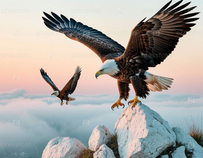 Орёл учит орла летать, белые скалы и нежная рассвета