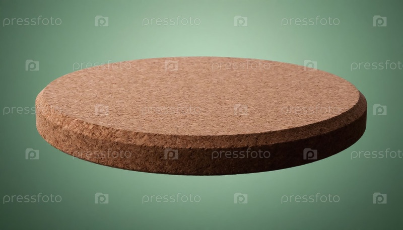 Корковый диск плавает на зеленом фоне