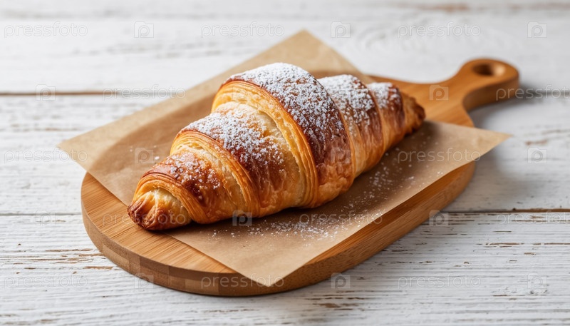Хрустящий золотой кроассан на деревянном стойке