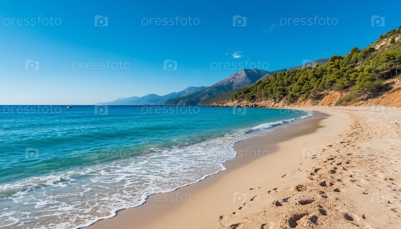 Морской пейзаж - берег моря, песок и волны, пустынный пляж