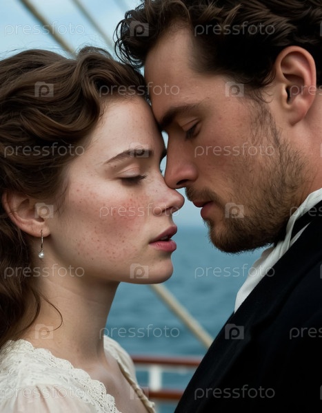 Молодой человек целует девушку на старой яхте
