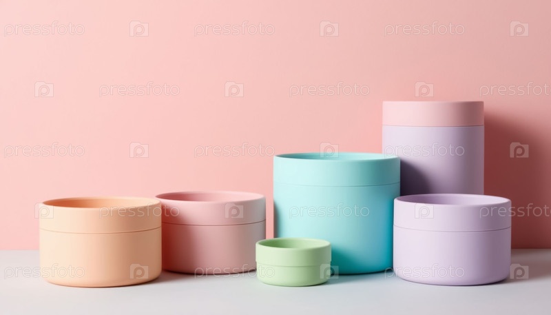 Пастельные декоративные или косметические контейнеры на столе
