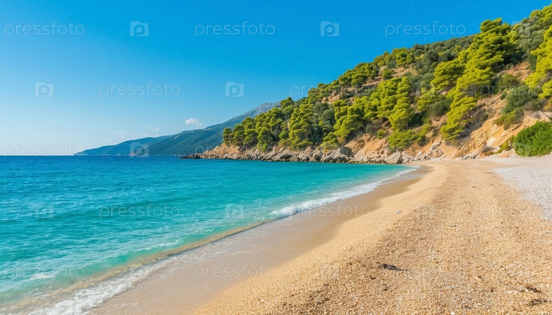 Морской пейзаж - берег моря, песок и волны, пустынный пляж