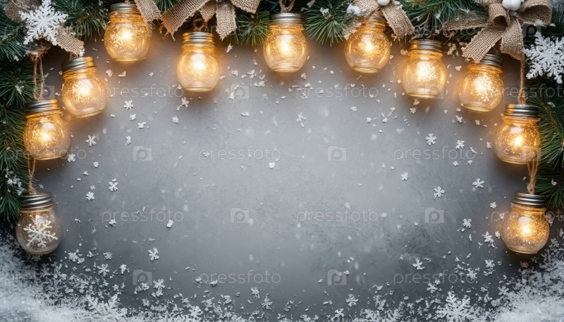 Рождественские фонари в каменных банках и фоне с копировальным пространством