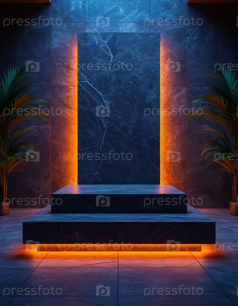 Роскошная подиум для презентации продукта на темном фоне с неоновым освещением