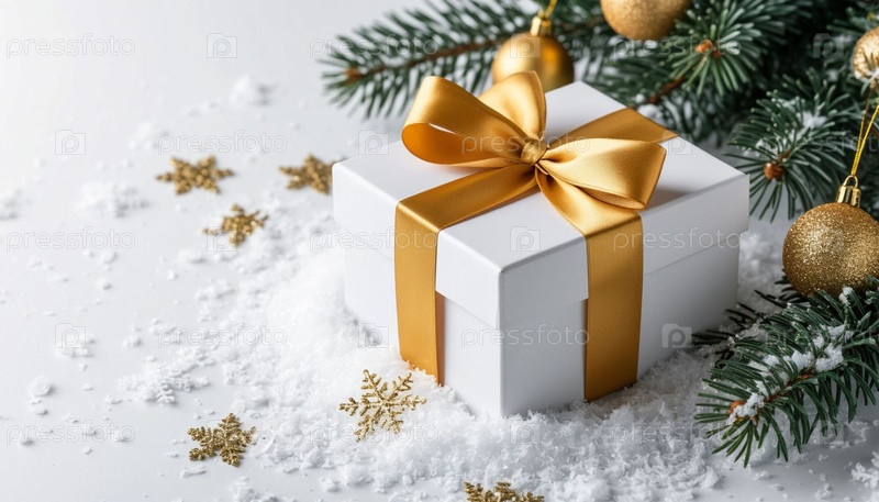 Рождественский минималистический фон с копировальным пространством и подарочной коробкой.Рождество.Новый год.Генерирование ИИ