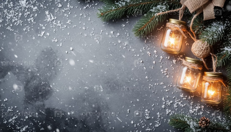 Рождественские фонари в каменных банках и фоне с копировальным пространством