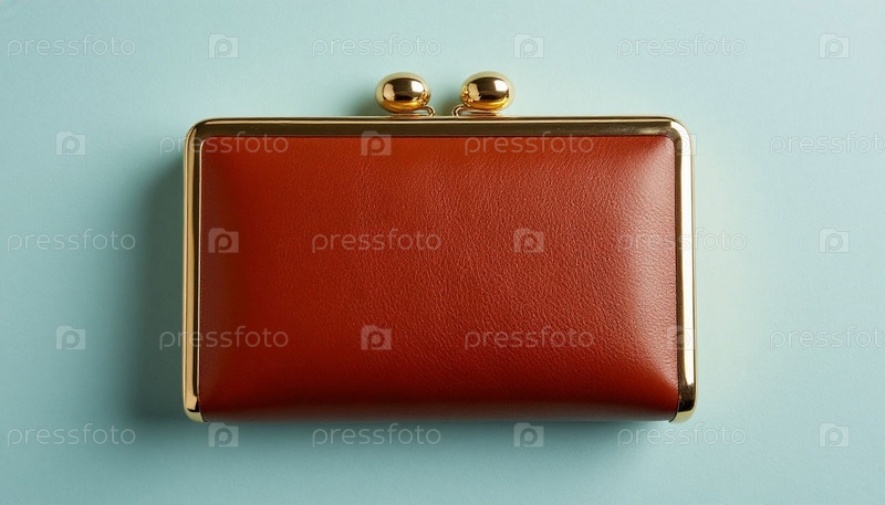 Женское кожаное сцепление на пастельно-серо-синем фоне