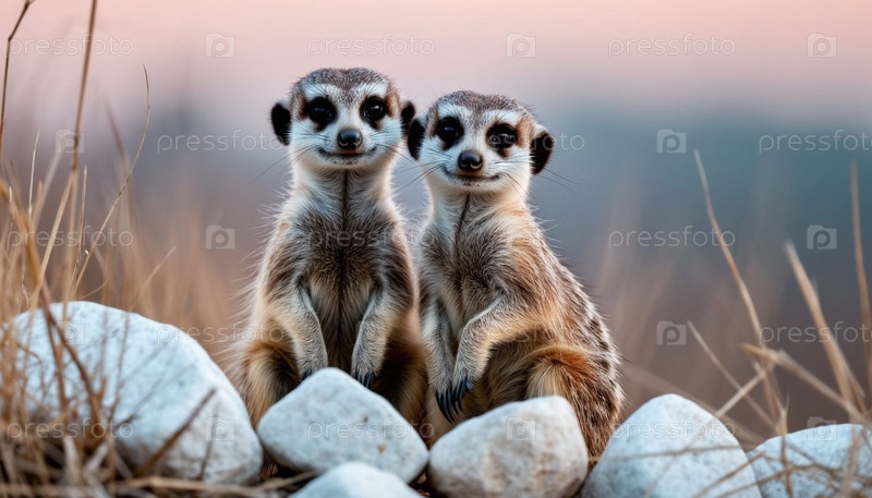 Два сурката заглядывают между скалами